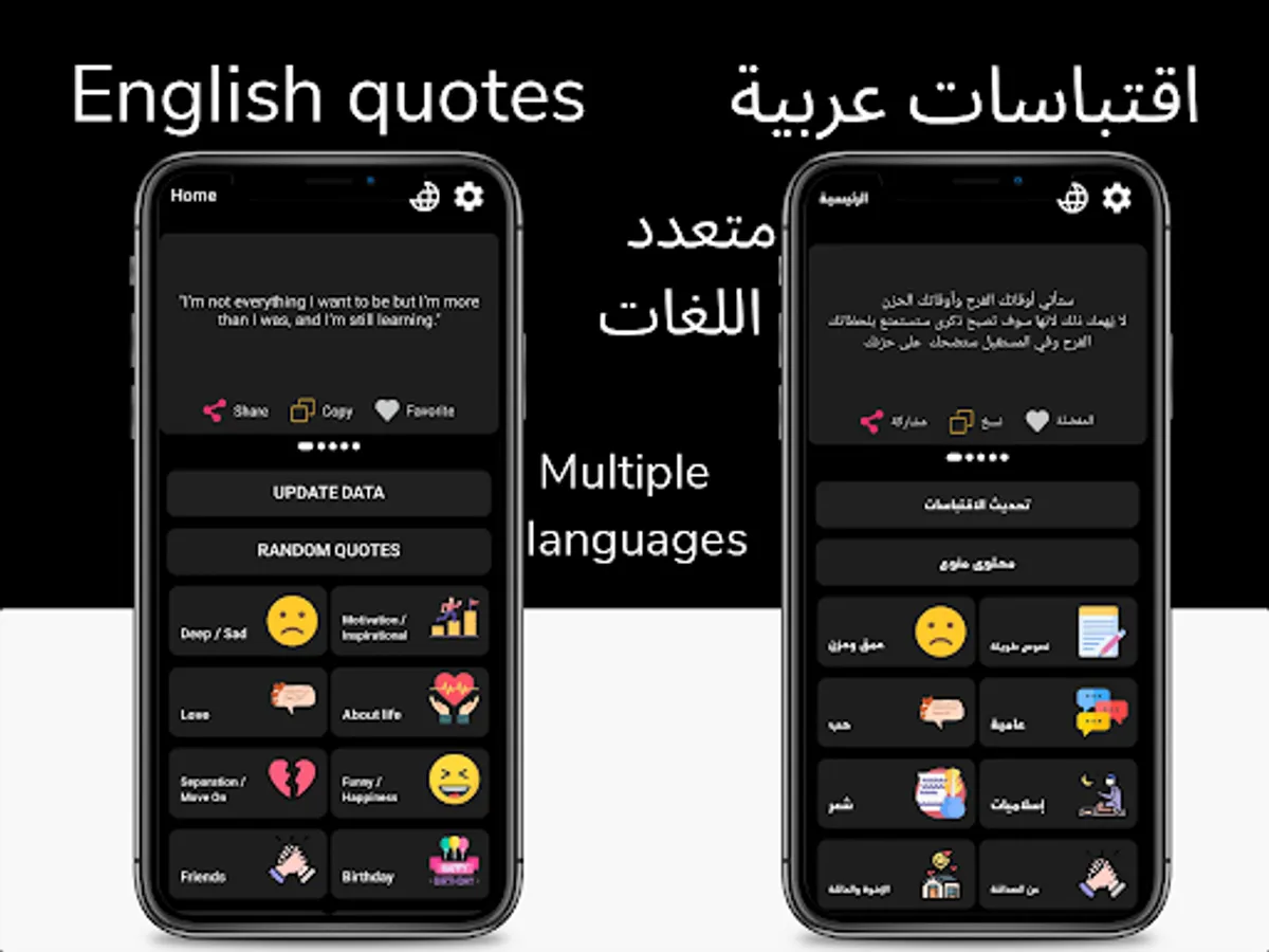 * There is a daily update of quotes, words and statuses in the application to get the latest content more than once a day.