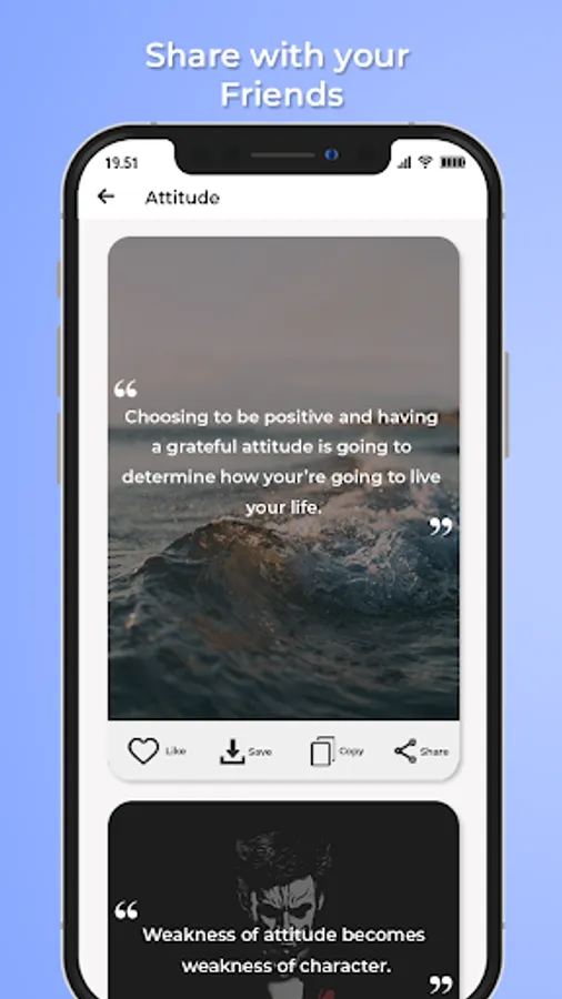 Our Quotes: Status Quotes & Social Media Quotes app has different categories where you can easily find quotes according to your mood. Having an attitude in life is also the part of life. Our best status and quotes app has many best attitude quotes by which you can present your personality in front of others. Share attitude quotes with others and you can also post it on different social media platforms.