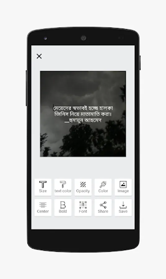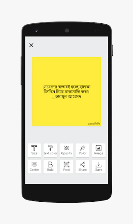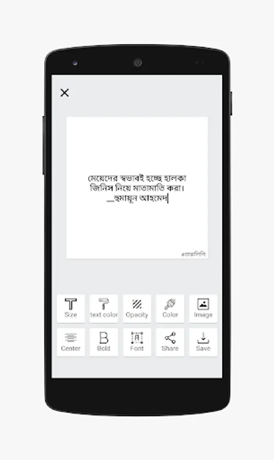 There are lots of offline quotes in this quote creator application, Love quote, best quote, inspirational quote. User can choose quote edit it or customize and share it to instagram or facebook status or any other social media.This is quotes creator best app for picture quotes and creator app. This is the best Quotes app in Bangla offline. There are lots of quotes app in play store but this is the best quotes designer app.There are lots of