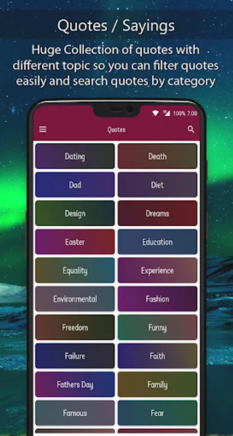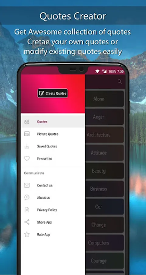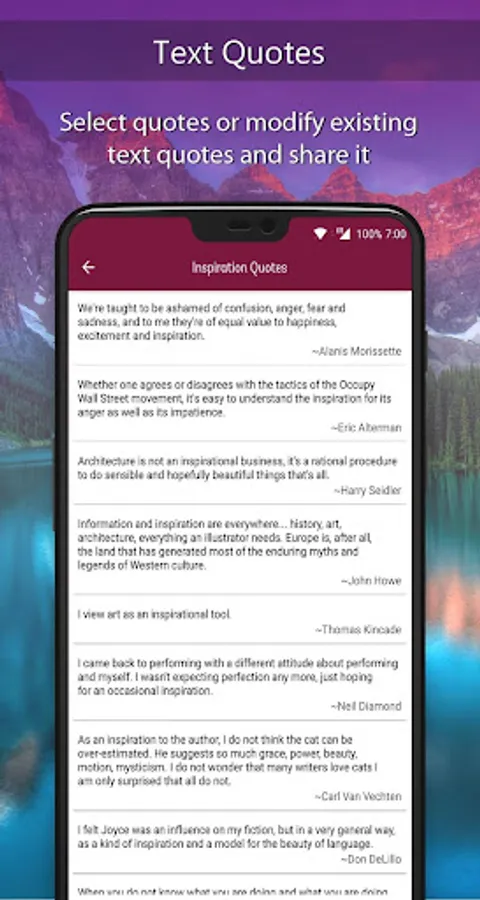 Quotes Creator is one of the largest collection of Quotes from different authors and comes with 50+ different quotes categories.