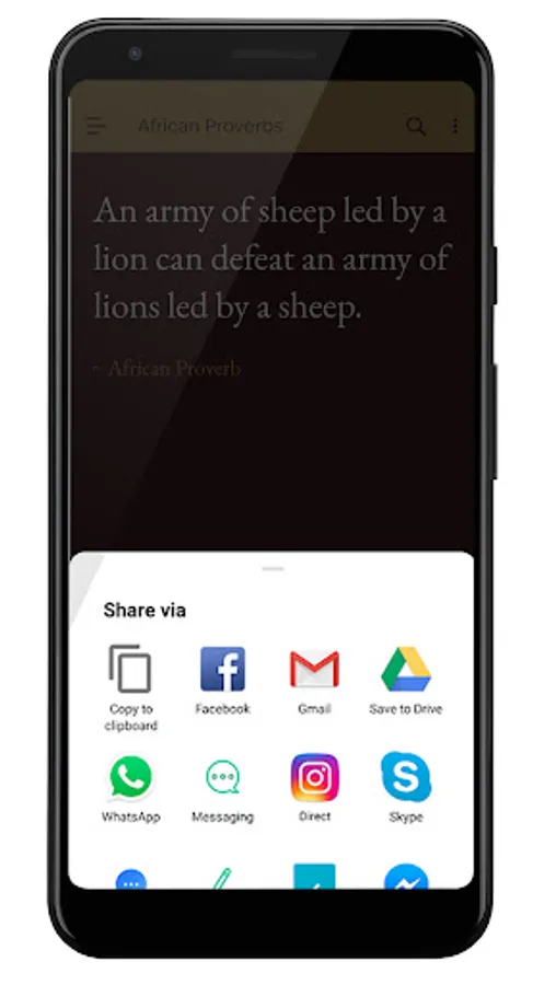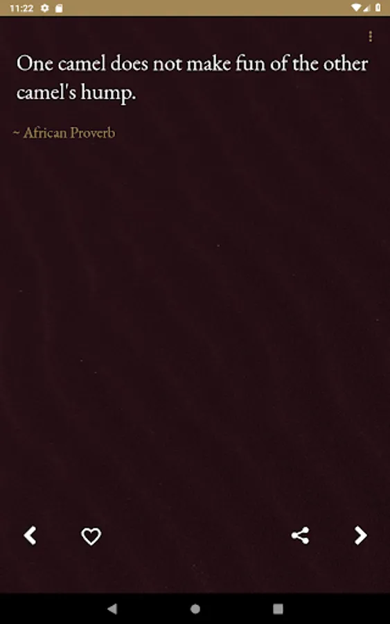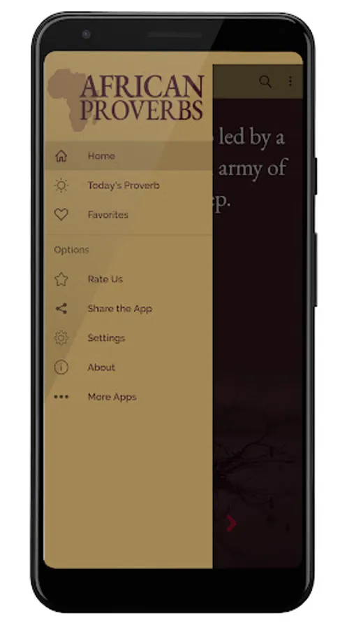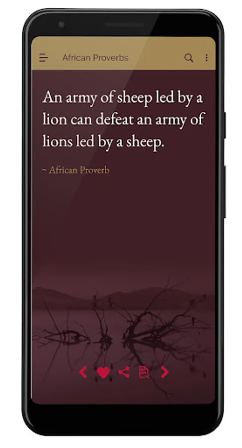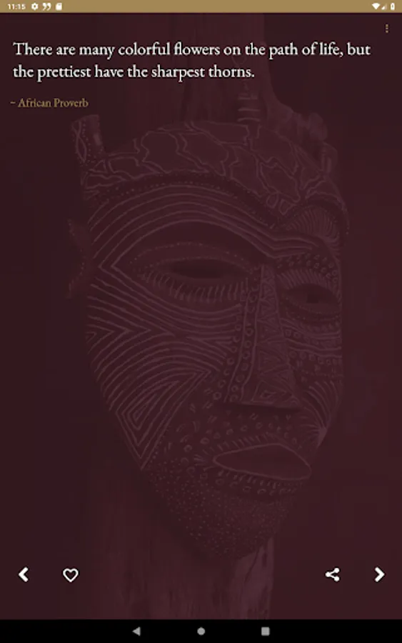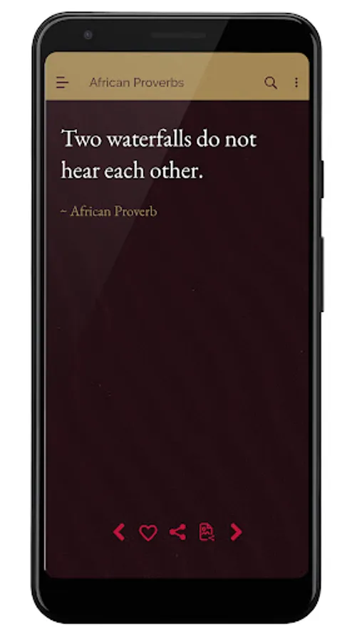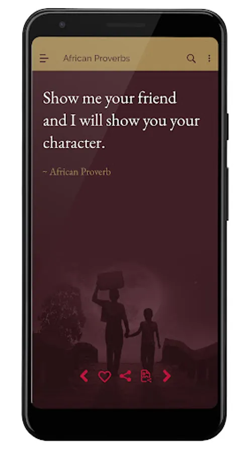 The proverbs in the app have been carefully selected from the best of African culture. Included in the app are Ethiopian Proverbs, Kenyan Proverbs, Swahili Proverbs, Nigerian Proverbs, Malian Proverbs, Somali Proverbs, Kanuri Proverbs, Senegalese Proverbs, Ashanti People of Ghana, Kikuyu, Kaonde, Madagascar Proverbs and many more.