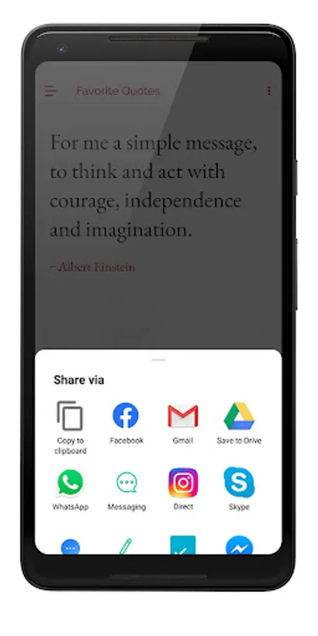 * Share quotes on Email, Facebook Whatsapp, SMS. You can also copy the quote to the clipboard.