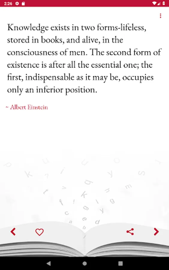 * Add a quote to your Favorites by clicking on the Heart icon. You can then select the Favorites quotes from the menu for later viewing.