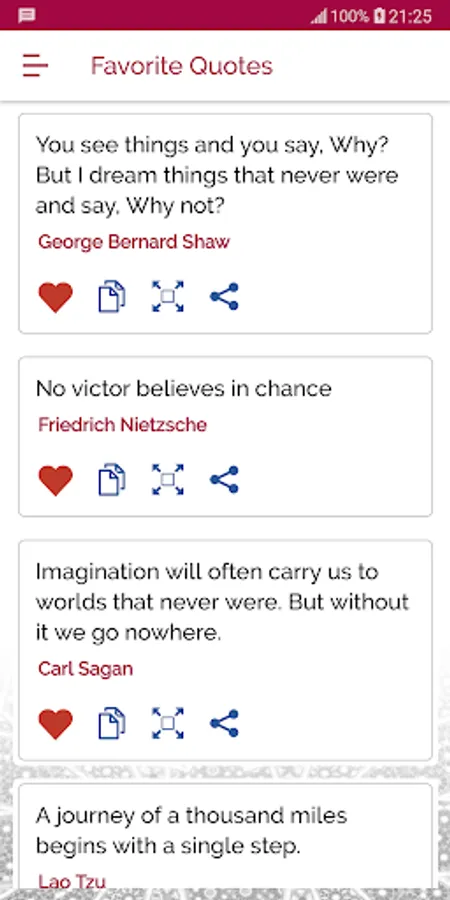 * View the quotes in cards or expand them full screen with beautiful backgrounds to choose from.