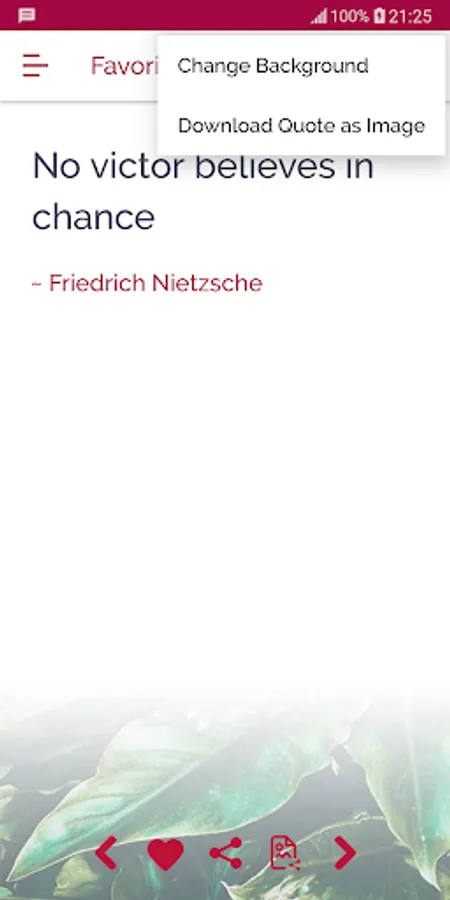 * Add a quote to your Favorites by clicking on the Heart icon. You can then select the Favorites quotes from the menu for later viewing.