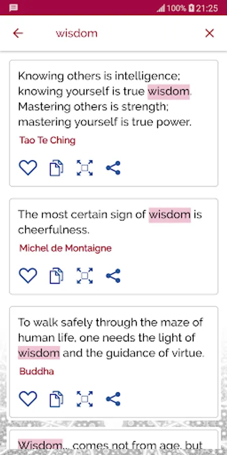 * Quick search that lets you search for quotes by typing in a keyword or the author name.