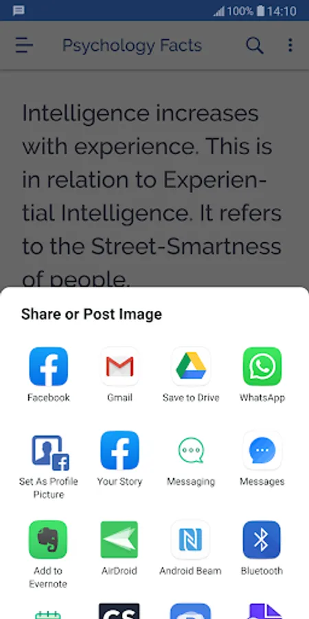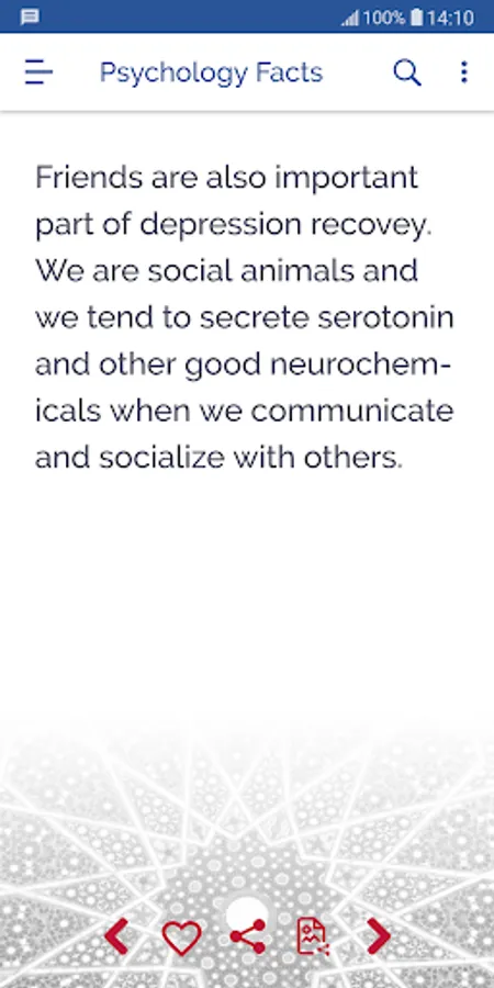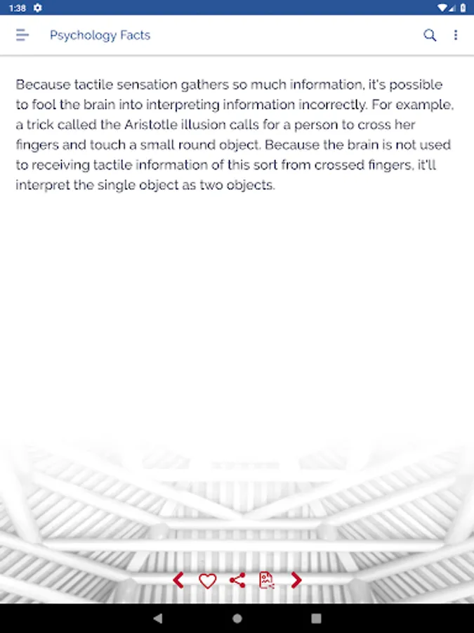 The Psychological Facts app is a compilation of interesting facts compiled from scientific journals and credible sources. These interesting psychological facts are curated and spans across a variety of topics.