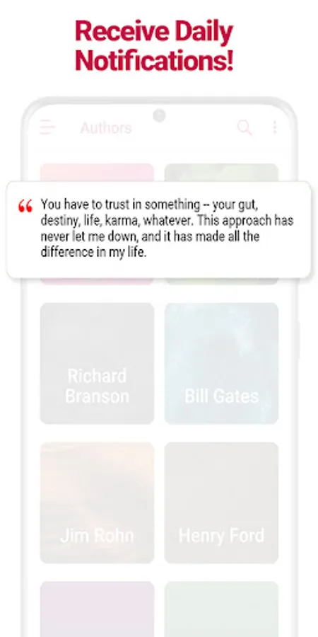 * Receive daily notification of select quotes and be inspired. You can also choose the time of the notification.