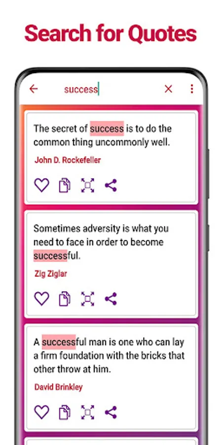 * Quick search that lets you search for quotes by typing in a keyword or the author name.
