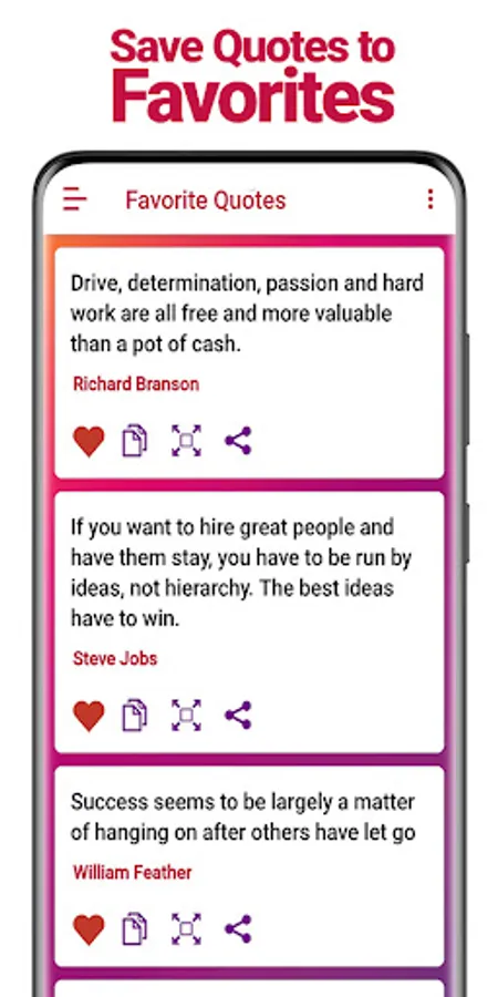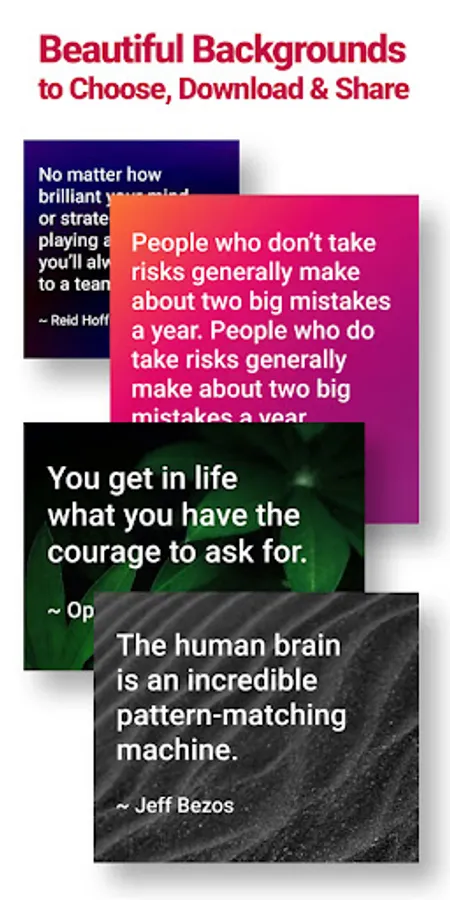 * View the quotes in cards or expand them full screen with beautiful backgrounds to choose from.