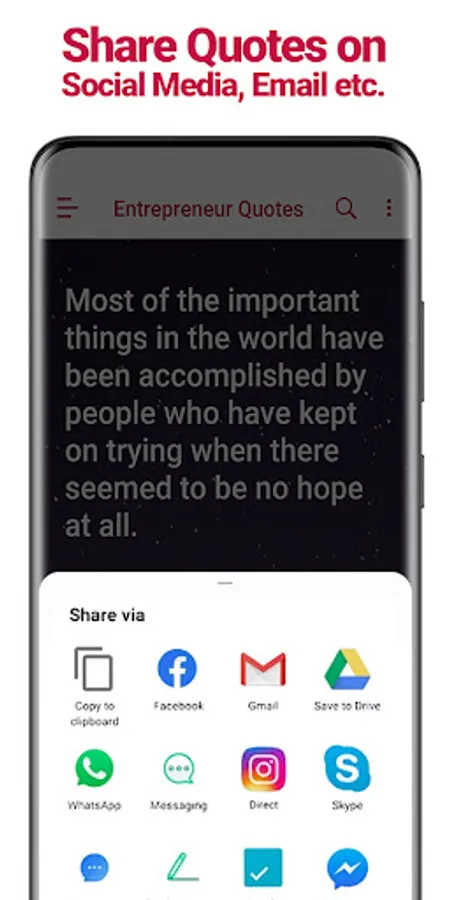 * Share quotes on Email, Facebook Whatsapp, SMS. You can also copy the quote to the clipboard.