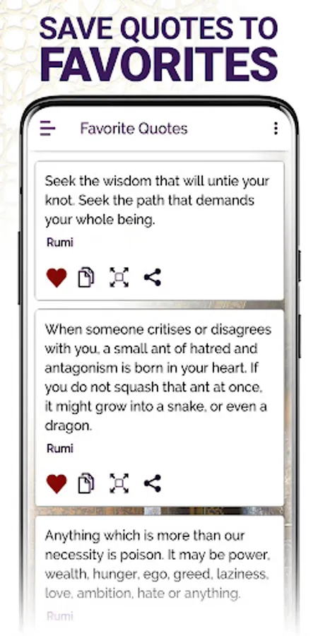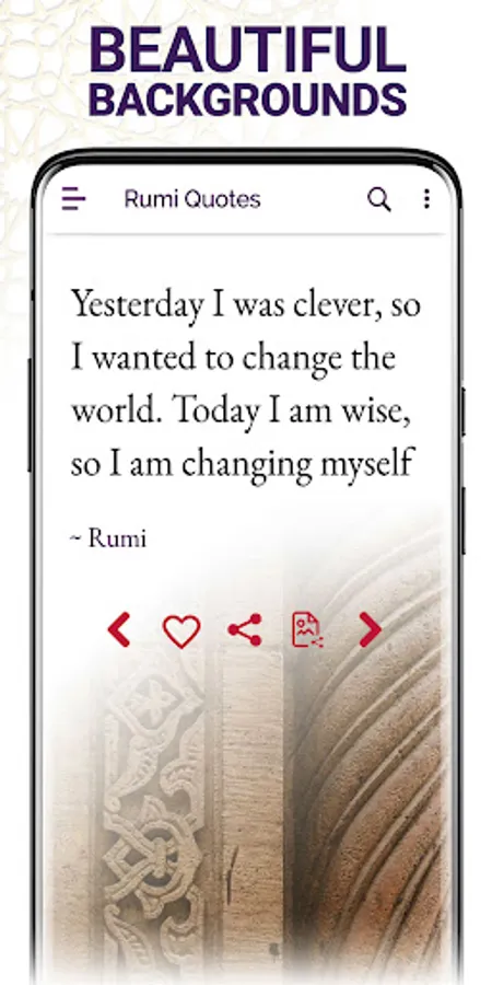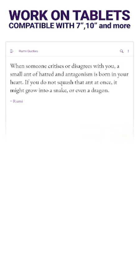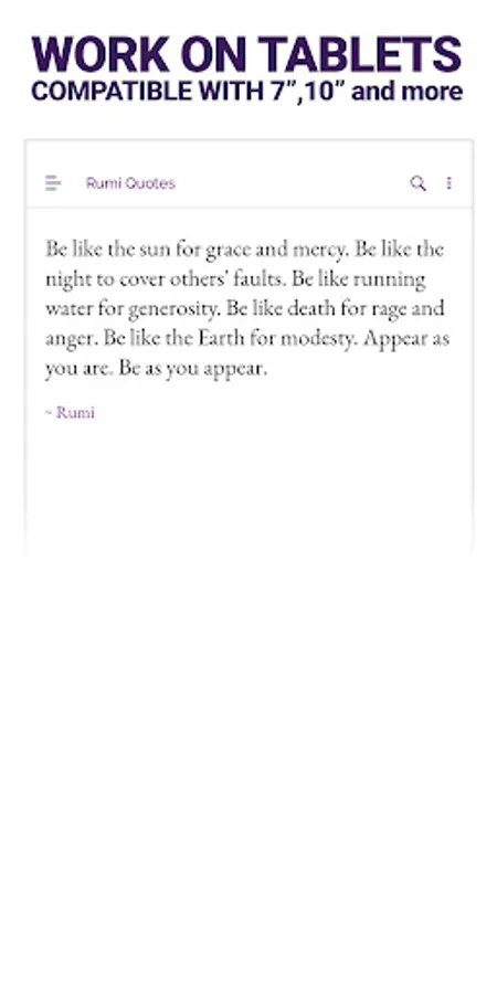 The Rumi quotes app is a collection of timeless quotes and proverbs. These timeless quotes have been forged in wisdom, spirituality and love.