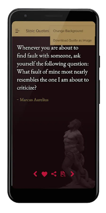 The Daily Stoic app is a hand-picked collection of inspirational quotes on Stoicism from Roman and Greek philosophers like Marcus Aurelius, Epictetus, Seneca, Zen of Citium, Hierocles, Chrysippus and Musonius Rufus.