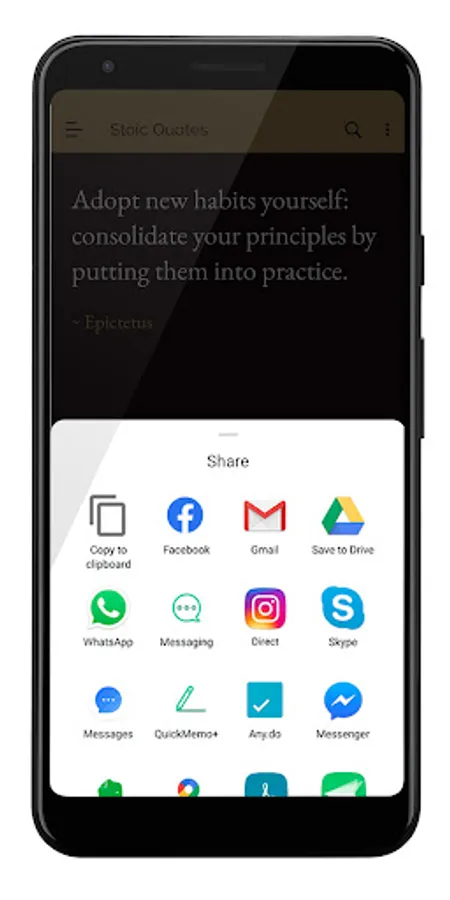 * Share quotes on Email, Facebook Whatsapp, SMS. You can also copy the quote to the clipboard.