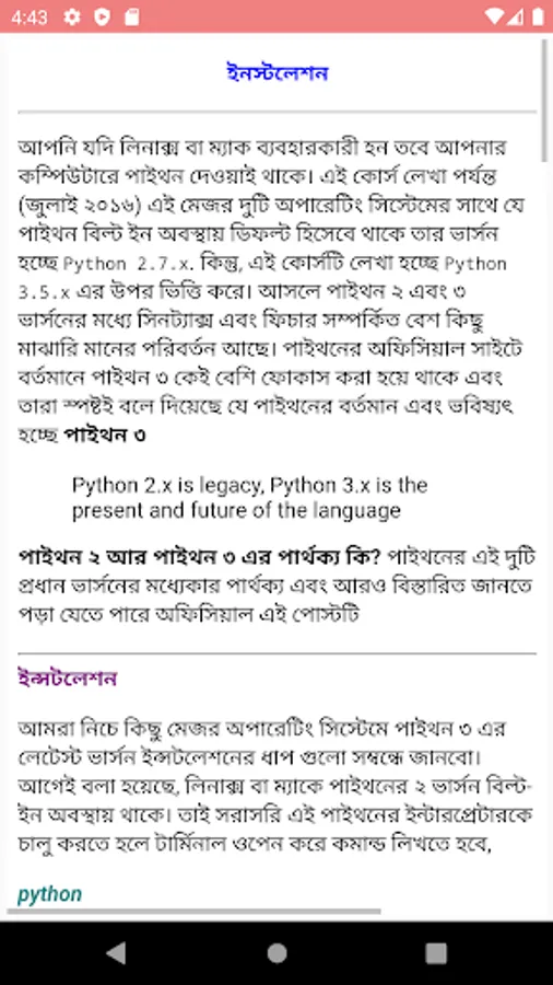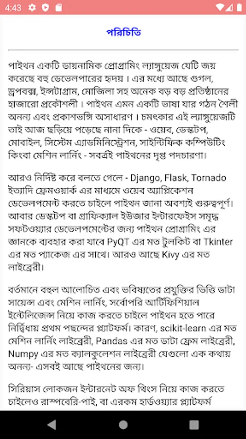 Python Bangla is a simple Android Book Apps. You can learn Python programming in Bangla easily using this apps. Python is an interpreted, interactive, object-oriented, open-source programming language.