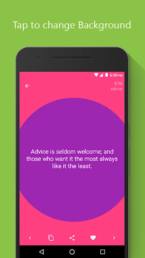 Make your quote beautiful with tap to change background. Tap and change the background with beautiful colors. Keep what you like and keep reading quotes.