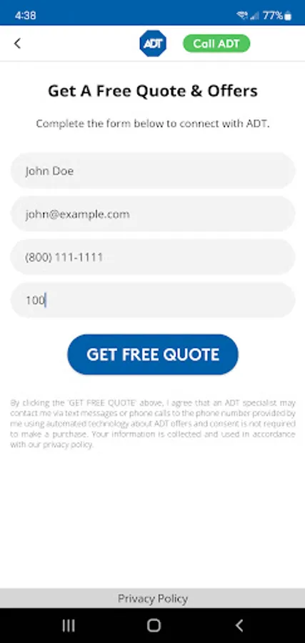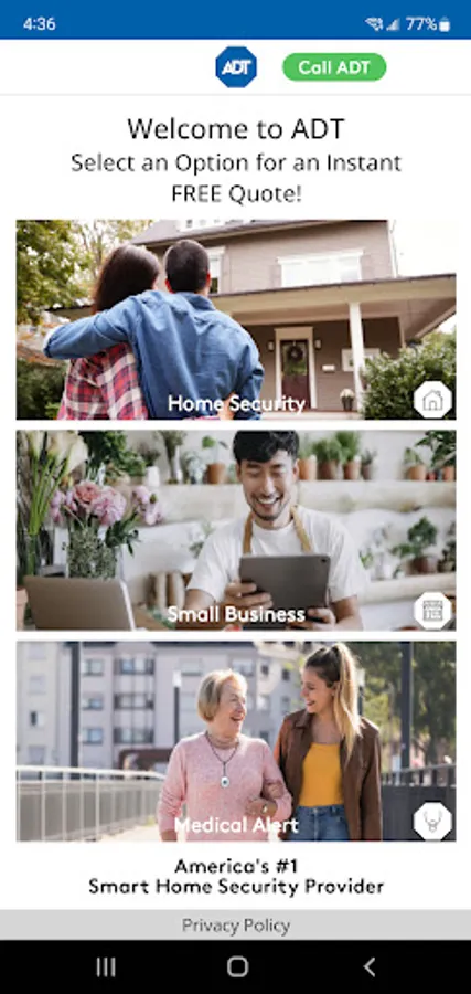 The Secure Your Home+Business app requires no upfront registration, allowing you to learn about ADT® services, shop the latest offers, or even build a custom quote. If you need further assistance at any time, a simple tap of the button will connect you by phone with any of our ADT® security specialists. No purchase is necessary. You are welcome to submit a quote request at any time with an immediate callback from a dedicated ADT® security specialist.