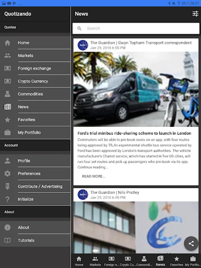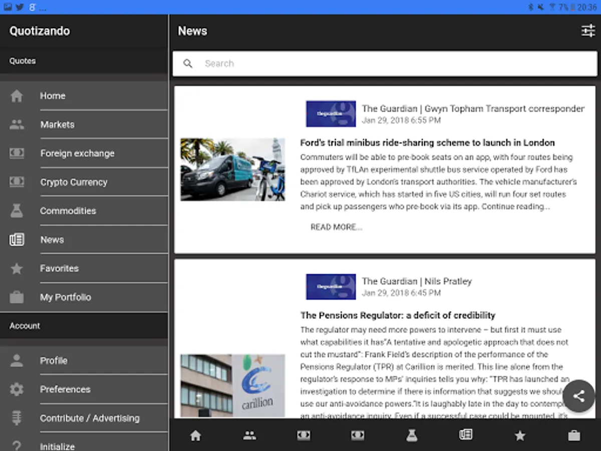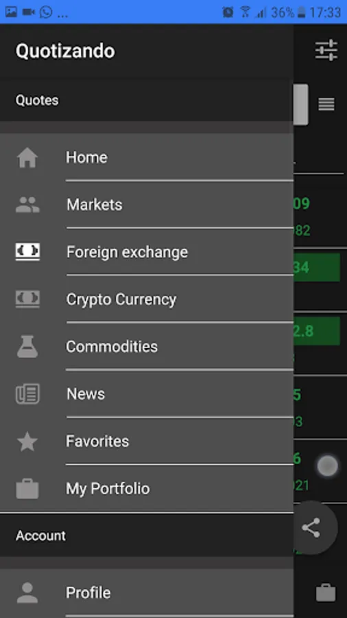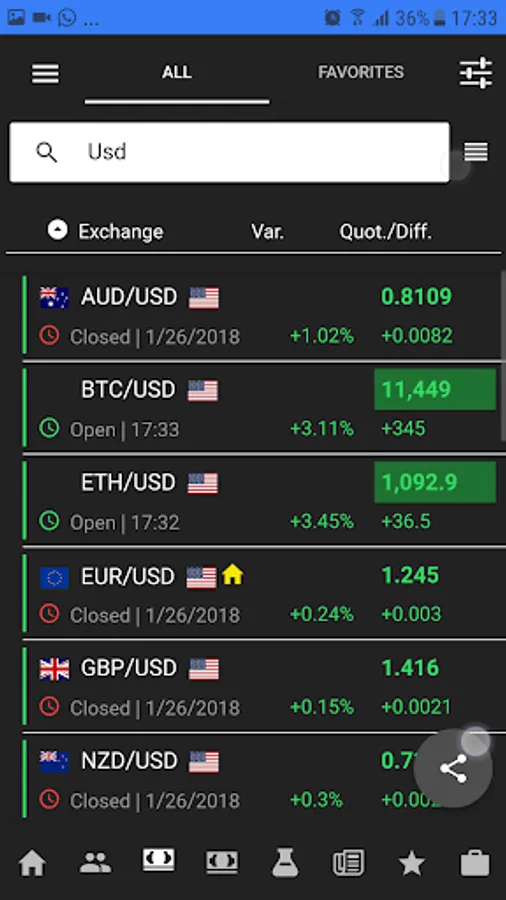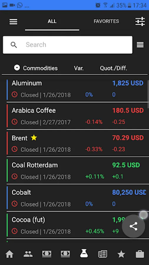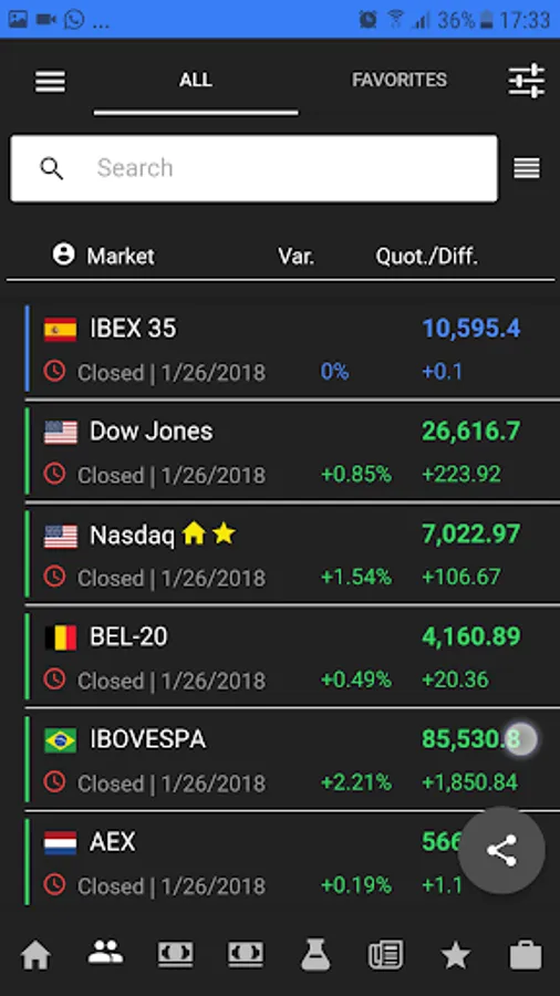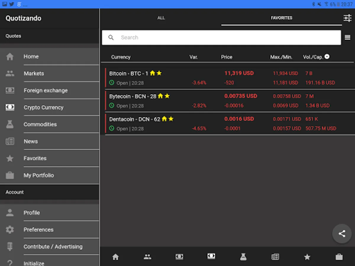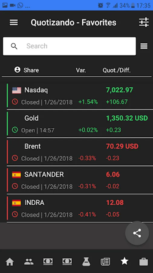 You can create lists of favorites in the different types of queries (markets, companies, currencies, crypto currencies and raw materials), as well as create your own list to see at the beginning of the application, where you can group your preferred values.