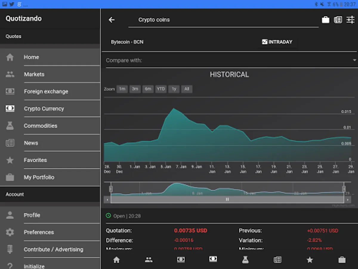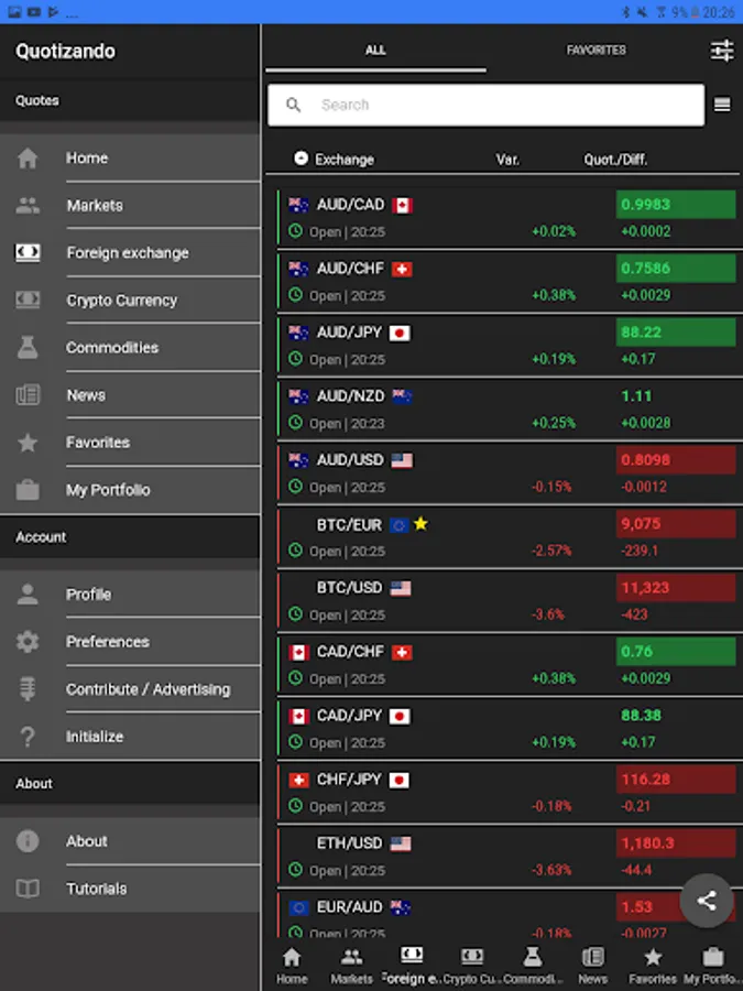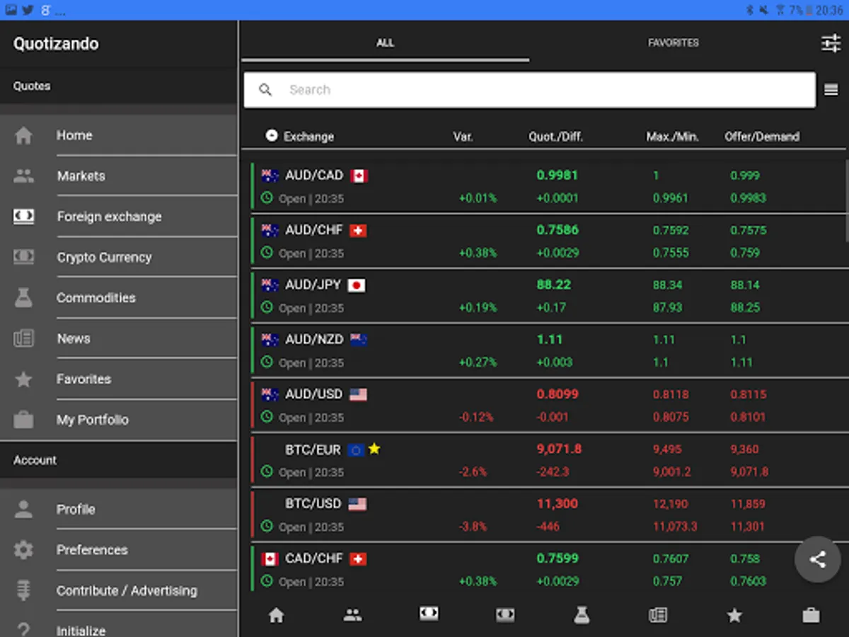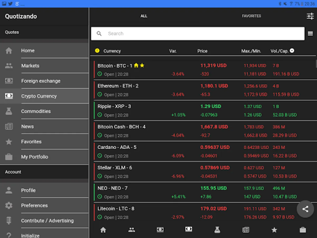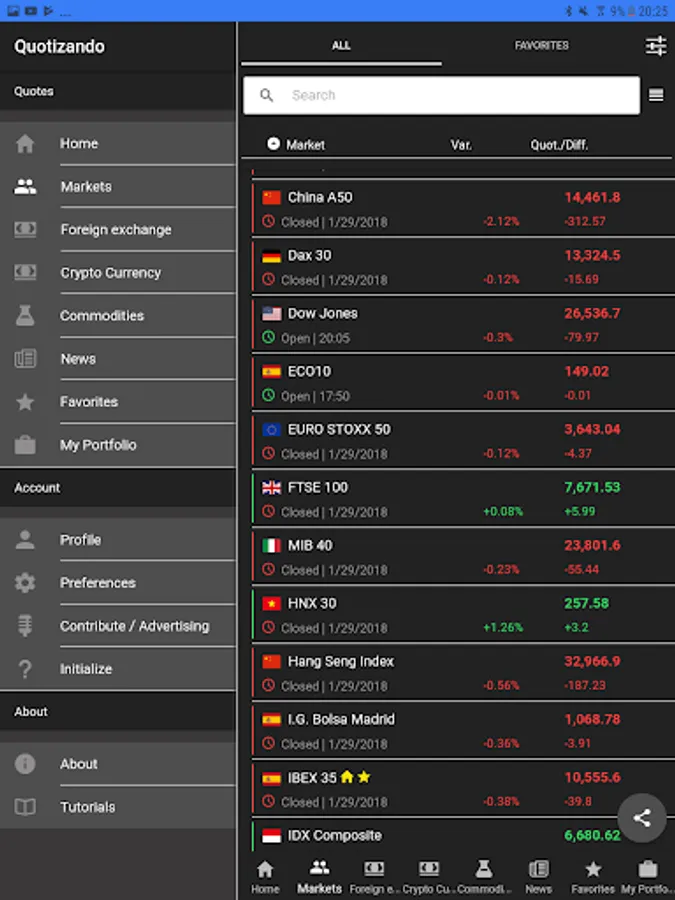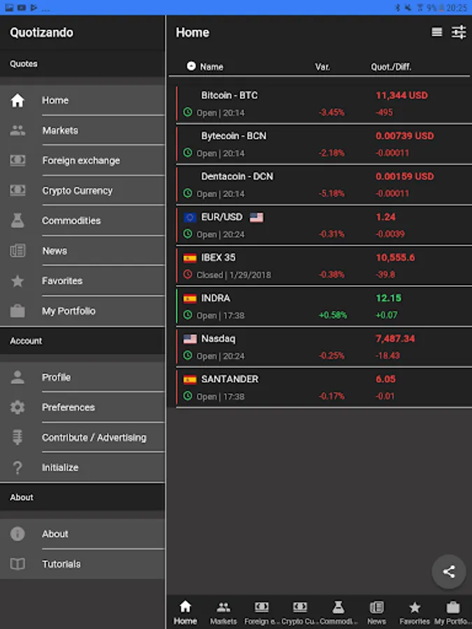 With Quotizando you will be able to consult the most important stock markets in the world as well as the companies that quote in them. You can also check the exchange of the most important currencies as well as the price of the crypto currencies that are booming.
