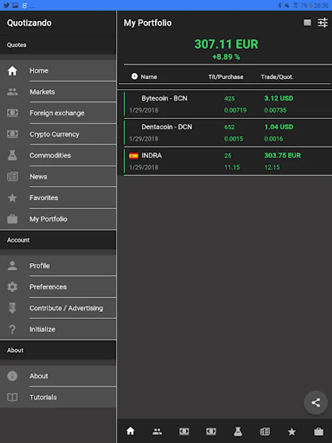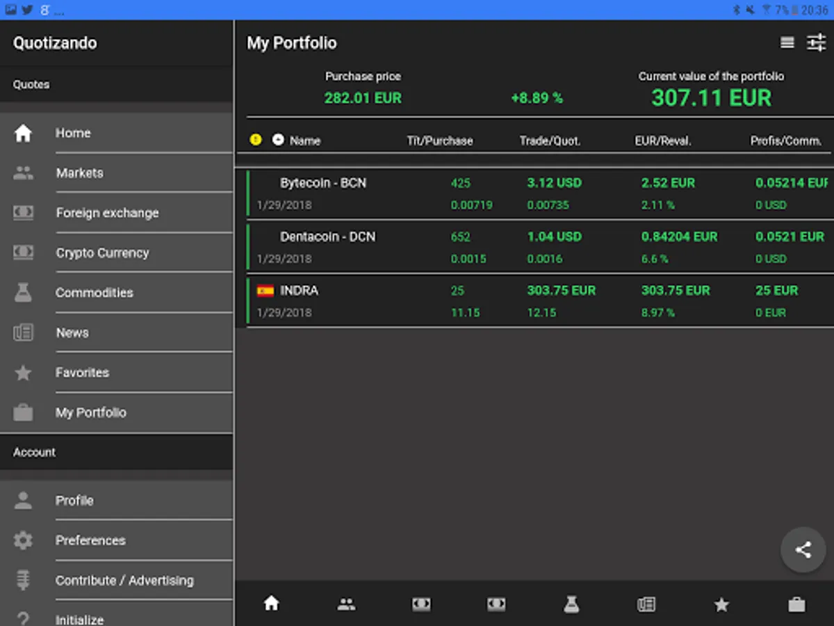 You can also create your own portfolio of securities where you can see how each of your investments evolve and you can have a global idea of the amount of your investment in the currency you choose, and see the performance that your portfolio generates.