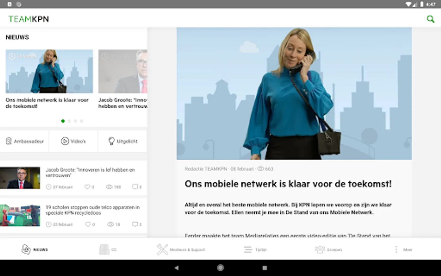 TEAMKPN Tablet is the Social intranet App for KPN Employees. Read KPN News and participate in a group, exchanges experiences and thoughts about your work at KPN. This app is optimized for use on tablets.