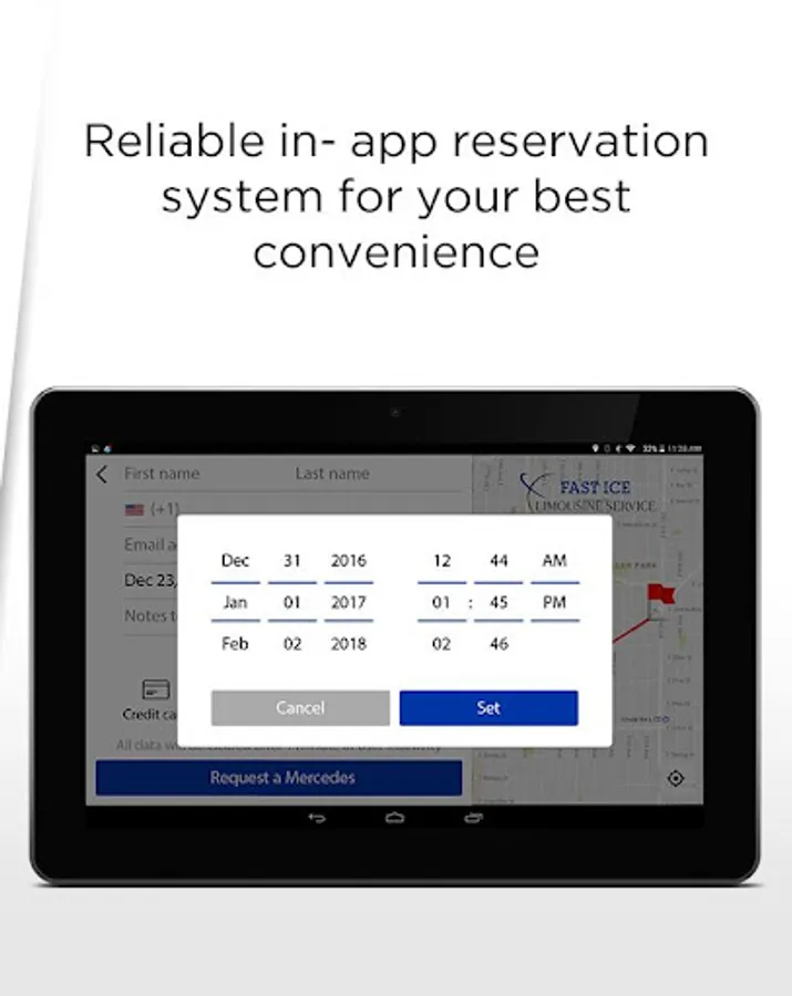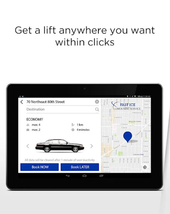 FAST ICE KIOSK is a premium self-service booking app which puts the convenience of requesting a car to the customer's fingertips. The app is ideally created for customers to book or pre-book a ride by themselves from a tablet without any hassle.