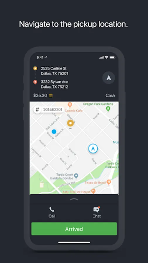 • Get exact directions to passenger’s location via auto – navigating system