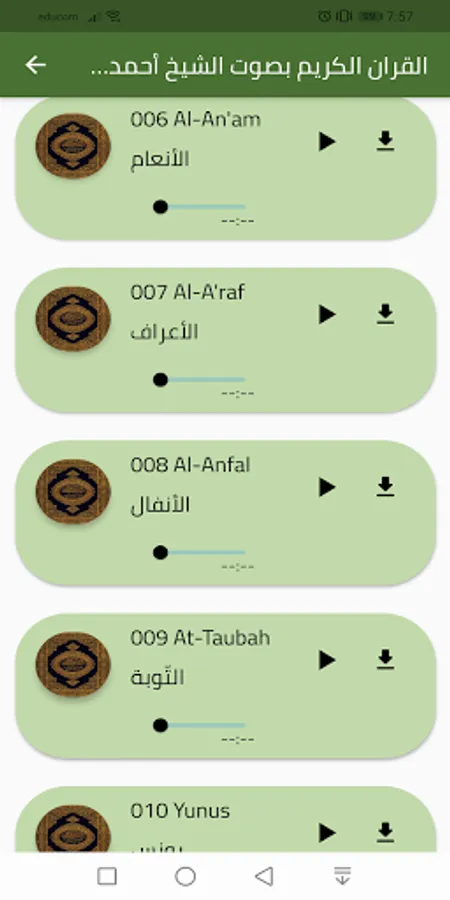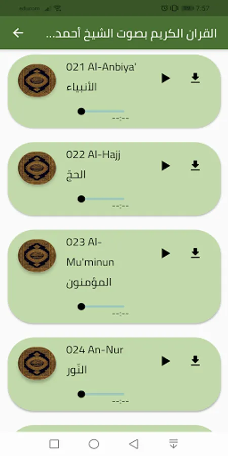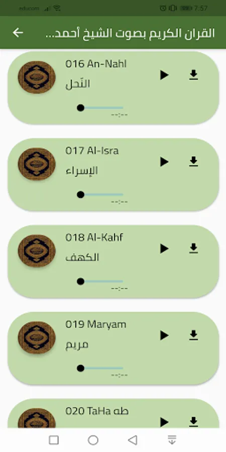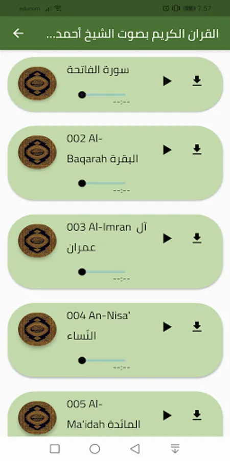 - قران كريم كامل بالإضافة إلى سورة الفاتحة