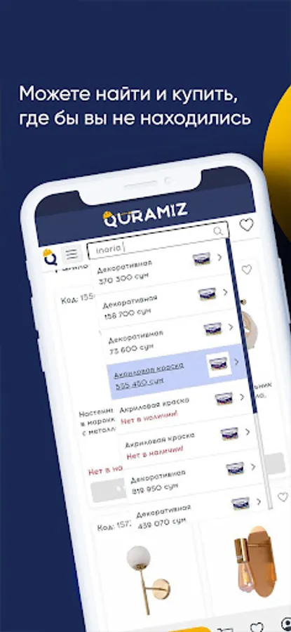 On our website quramiz.uz and the QURAMIZ mobile application, you can find and compare prices for general construction materials, tools for construction and repair, fasteners, paints and varnishes, plumbing components, electricians and landscaping products.