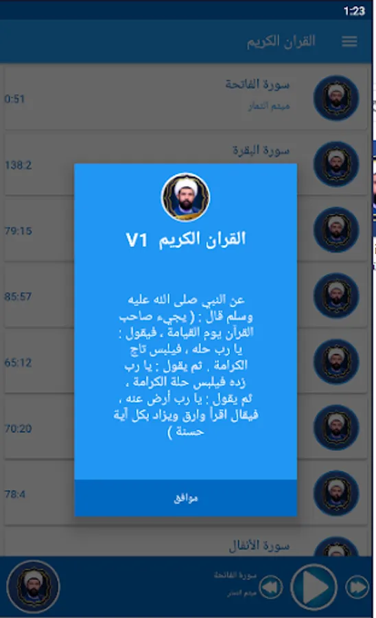 So if the internet connection drops while listening to the surah it will not affect the quality and the audio file will still play.