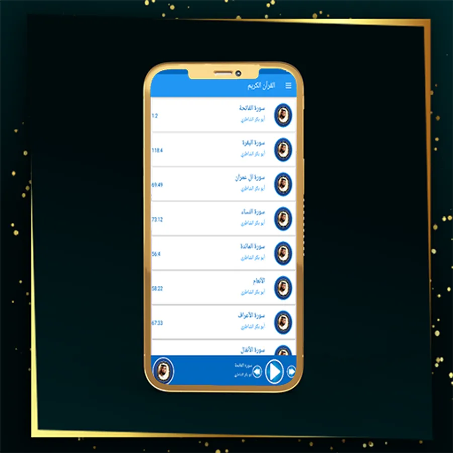 The application contains 30 parts of the Noble Qur’an and 114 Surahs in the narration of Hafs from Asim, recited by Sheikh Yunus Aswelis as follows: