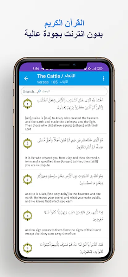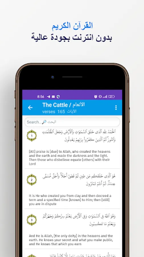- The Noble Qur’an, Surat Al-An’am, with the voice of the reciter Abdullah Basfar