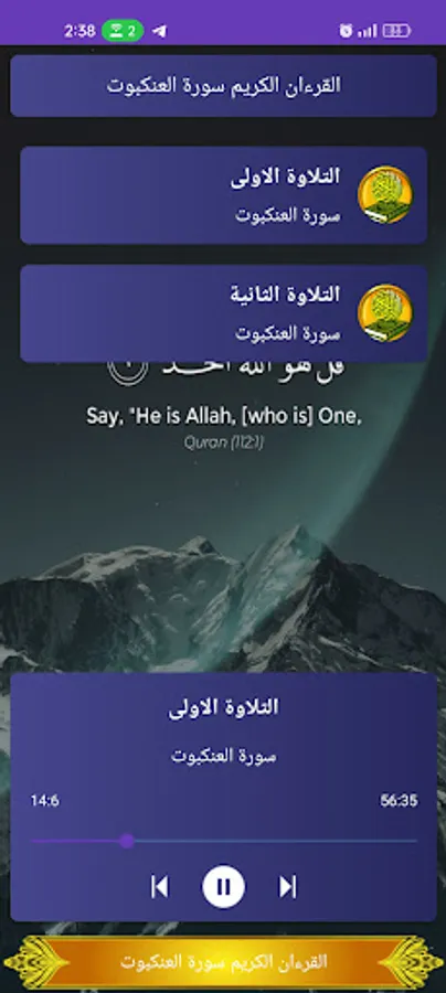 - The Holy Qur’an, Surat Al-Ankabut, recited by Al-Ayoun Al-Kushi