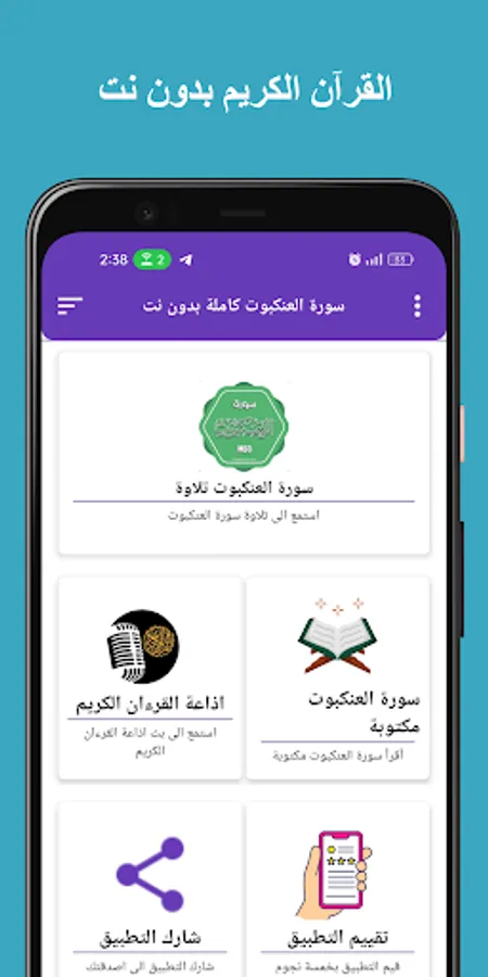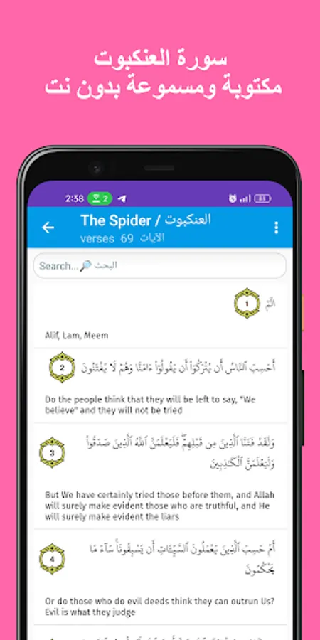 - Notifications feature to receive alerts such as reading Surat Al-Ankabut on Friday and the approaching Ramadan..