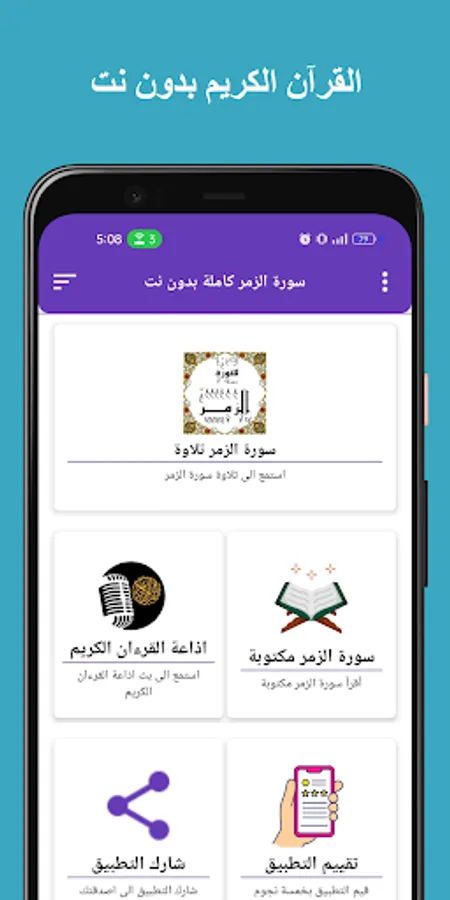 - The notification feature to receive alerts such as reading Surat Al-Zumar on Friday and the approaching Ramadan ..