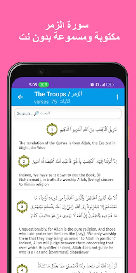 - The Holy Qur’an, Surat Al-Zumar, in the Iraqi, Hijazi and Egyptian ways, without the net