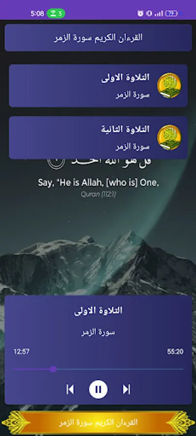 - The Holy Qur’an, Surat Al-Zumar, with the voice of the reciter, Maytham Al-Tamar, an Iraqi maqam