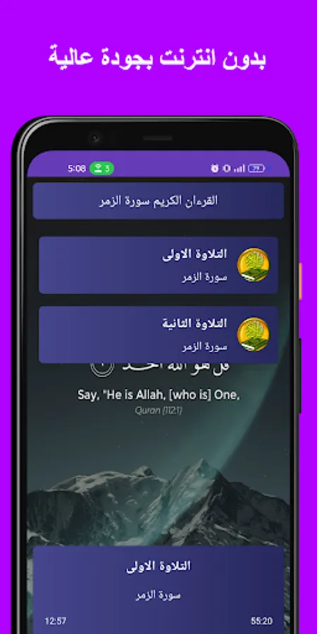Hear Surat Al-Zumar with a beautiful and understandable voice without the Internet, with several recitations, including: