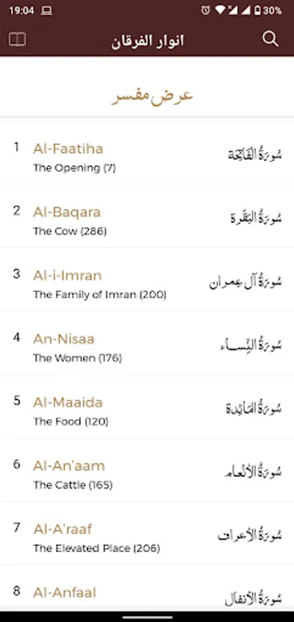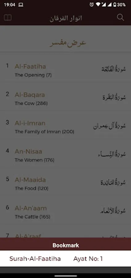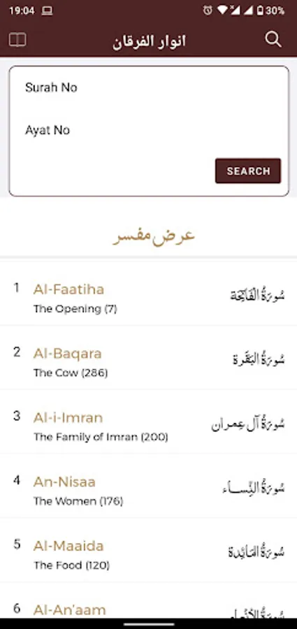 2. Reader is provided search facility by Sura (chapter) number and Auyat ( verse) number.