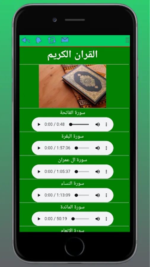 The Road to Heaven application contains an entire section of the Noble Qur’an, the electronic Quran, written and audible, that contains all the surahs and verses of the Noble Qur’an, which you can download and read on your phone every day without the need for the Internet.
