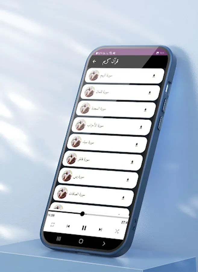 🔹 You will not need to pay money to purchase the application, and you will not need a large space on your device to install an application, and after installing the application with ease from the store, you will be able to listen to the Holy Quran in full audio and video.
