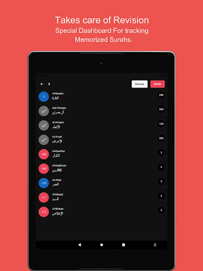 We understand that just memorization is not enough , Therefore Easy Quran Memorizer comes up with many additional features to assist revision process.