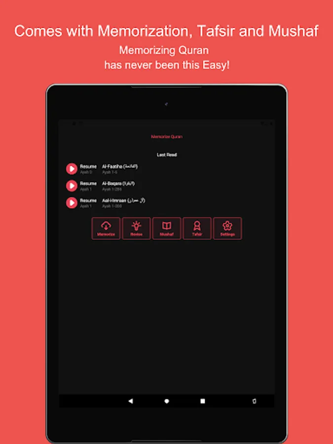 Memorize Quran has been created with user needs in mind. All the features are curated to ease the memorization of Quran.