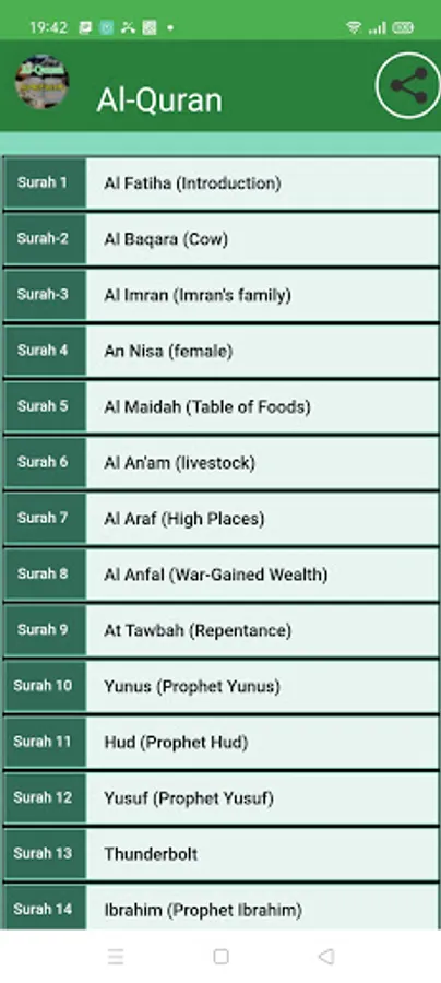 - With go to Ayah number option you can jump to a Ayah instantly.
