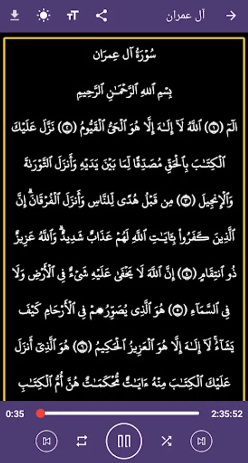 The application of the Noble Qur’an, Fares Abbad, enables you to listen to the surahs of the Holy Qur’an and read all of them after specifying the name of the surah that you want to listen to, and you can read it at the same time, which is recited by Sheikh Fares Abbad in every surah.