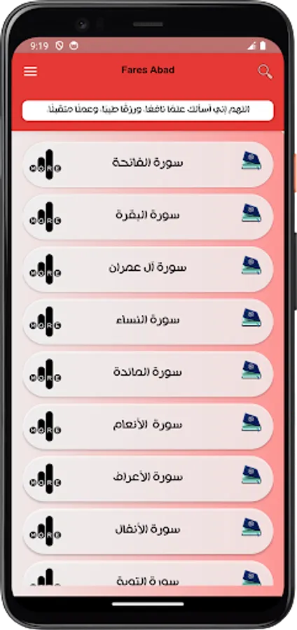 The application of the Noble Qur’an with the voice of Fares Abbad allows you to hear all the surahs of the Noble Qur’an through your mobile phone or tablet with ease and ease through one program that contains all the surahs of the Noble Qur’an. The Quran recitation application is also characterized by the voice of Fares Abbad by being free and available on the store for Android phones. And the Holy Quran application can be downloaded with the voice of Fares Abbad with ease, so that you can enjoy reciting the Noble Qur’an with the voice of Sheikh Fares Abbad wherever you want.