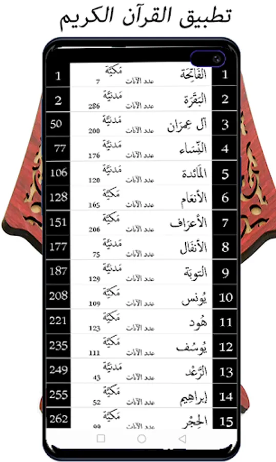 Open any Juz or Surah directly from index. It has all 30 chapters and 114 surahs, long tap to view information about it. Resume option will take you to the page where you left reading last time. With go-to page number option you can jump to a page instantly.