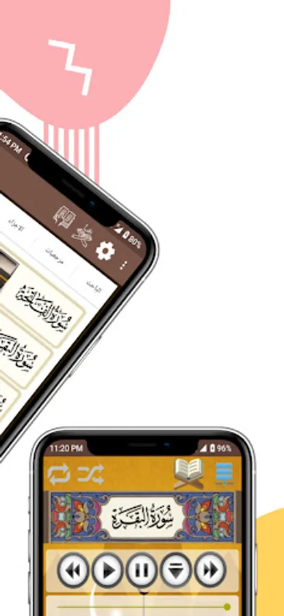 - Recitations can be downloaded to any reader and any number of surahs in an easy way and run at any time without the need for the Internet.