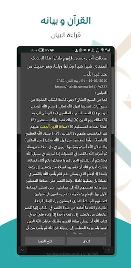 In this version there is also a link for more than 90% of the statements of Imam Nasir Muhammad Al-Yamani with the verses so that when you click on the verse and then click on the application icon (the icon of the Qur’an statement) you have the data in which this verse was mentioned with its information and it is possible to read the statement or quote from the statement about By clicking on any of the data addresses that appeared to you.