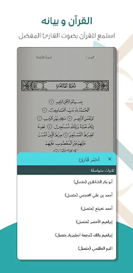 It is an application that contains the electronic Quran and the ability to play the Quran audio for more than 70 readers
